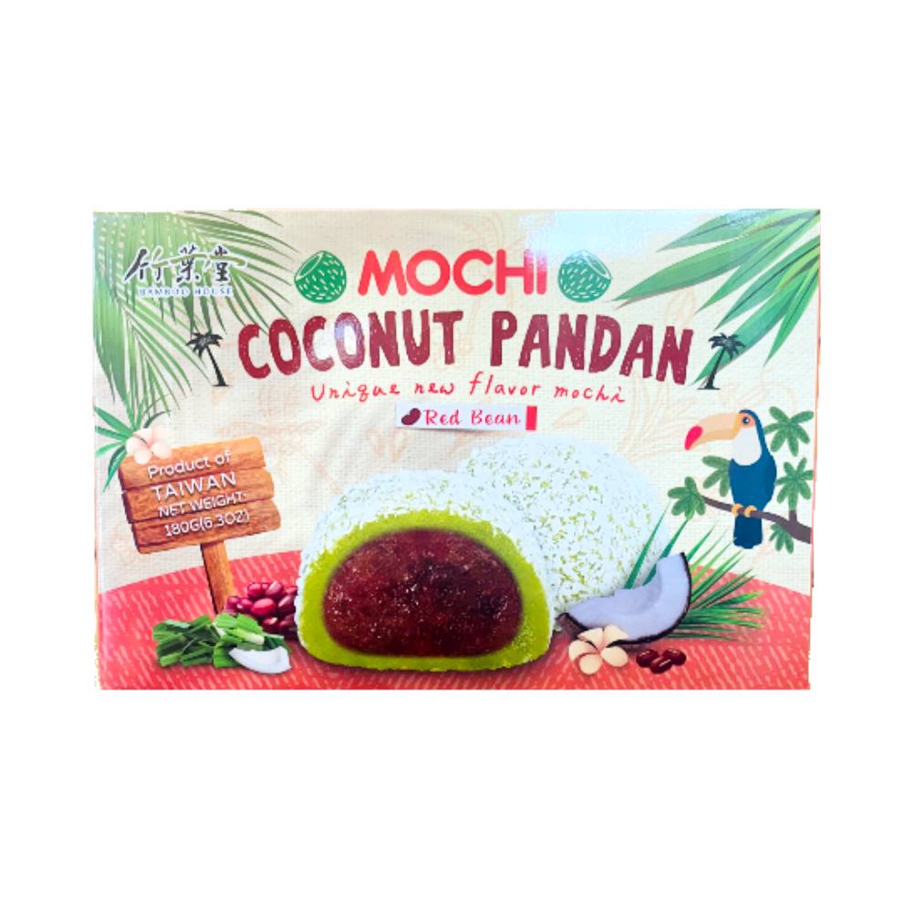 Bamboo House Mochi s Příchutí Kokosu a Pandanového Listu s Náplní Červených Fazolí 180g (4710623830095)